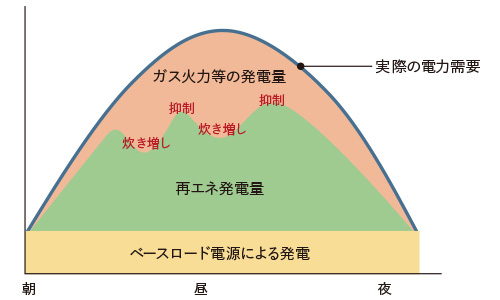 再生可能エネルギーによる発電量は天候状況や時間帯に左右されるため、電力需要に対して過不足が生じる場合があります。一方で、 LNGを燃料とするガス火力は機動的かつ安定的な発電が可能であるため、電力需給の調整役を担い再生可能エネルギーの弱点を補完しています。このような背景から、エネルギー・トランジションに注目が集まる今日においてもLNGは脱炭素社会を実現する上で欠くことのできない重要なエネルギー源として位置付けられています。