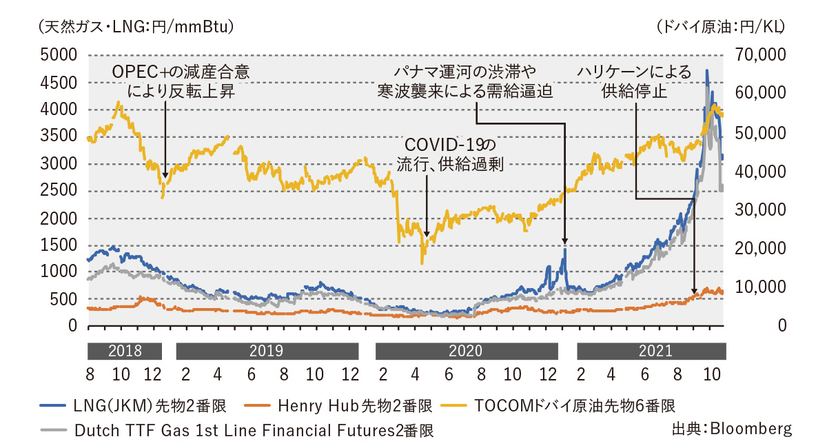 天然ガス・LNG・ドバイ原油の価格変動推移