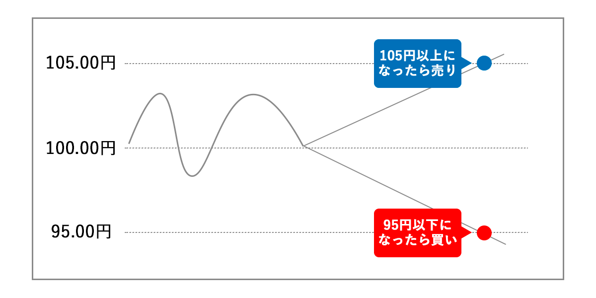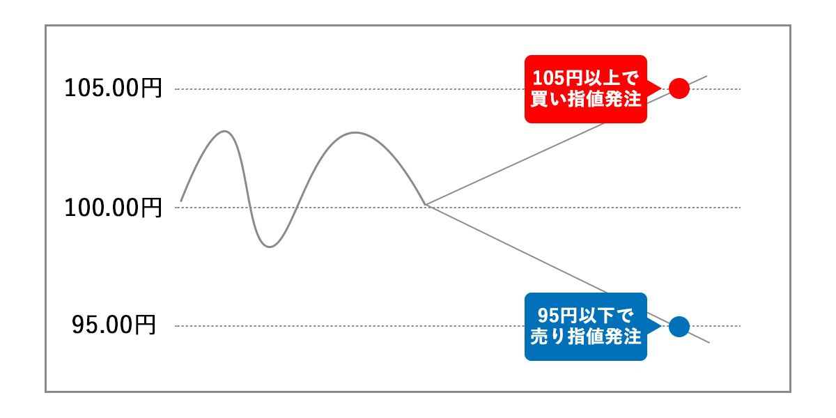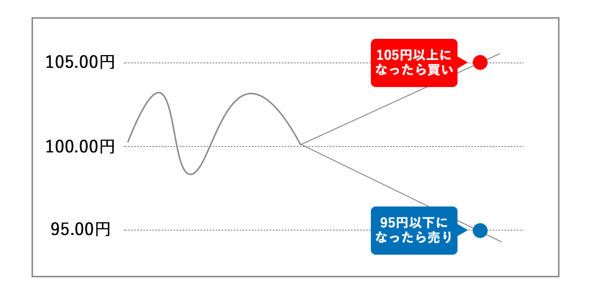 発注時に指定した価格以上に価格が上昇したときに有効となる買指値注文、または指定した価格以下に価格が下落したときに有効となる売指値注文です。