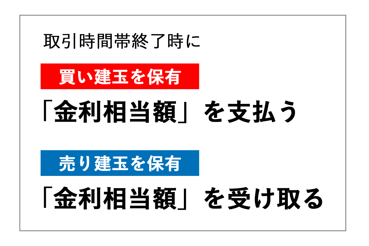 発生した「金利相当額」は建玉決済時に確定し、その後、受け渡しが行われます。