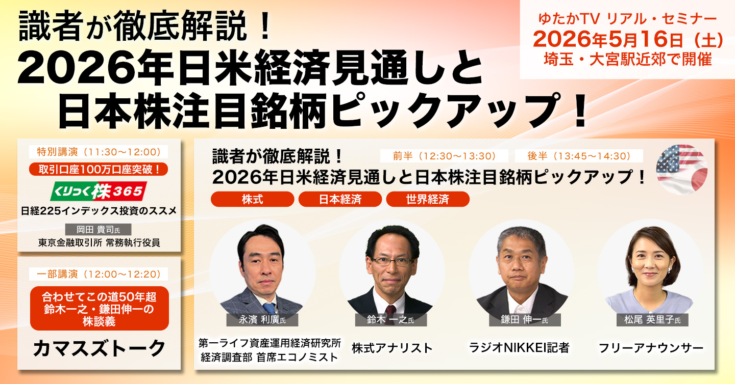 | セミナー名称 | 『識者が徹底解説!2026年日米経済見通しと日本株注目銘柄ピックアップ!』 in 大宮 |
