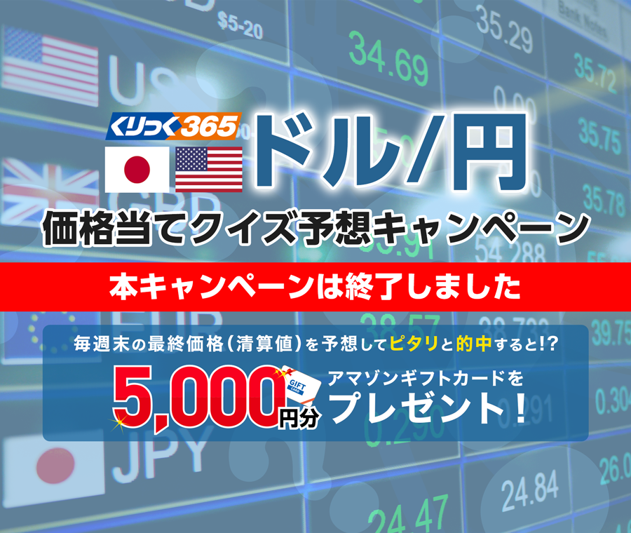 この度、当社では2025年5月19日(月)から2025年7月11日(金)まで、「【くりっく365市場】 ドル/円の価格当てクイズ 特別キャンペーン」を実施いたしますので、お知らせいたします。